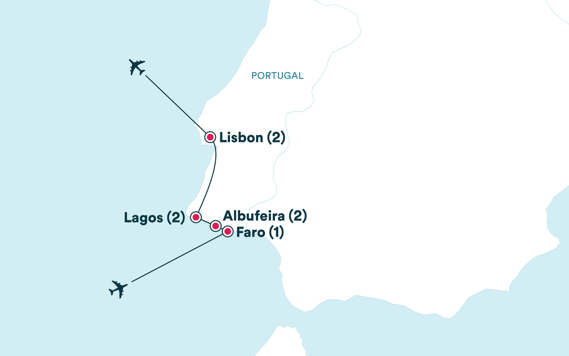 Settle in and catch some rest on your flight to Portugal—your exciting adventure along the breathtaking Algarve coast and vibrant Lisbon awaits! Fun fact: The Algarve is home to some of Europe's most stunning beaches, with golden sands and crystal-clear waters, plus its famous coastline features over 30 hidden caves and grottoes you can explore by boat!