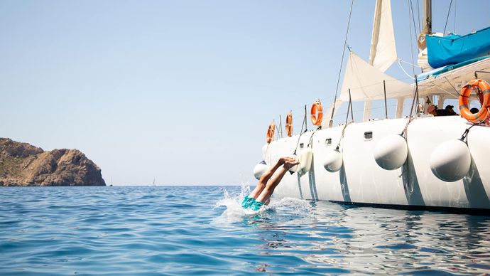 - Lounging in the Ibiza sun on a luxury catamaran cruise