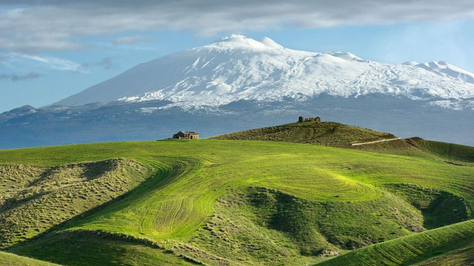 - Looking up at Mt. Vesuvius from the city it made famous, Pompeii